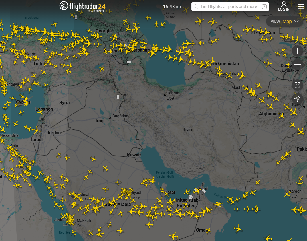 Potrivit site-ului de monitorizare a zborurilor Flightradar24, spațiul aerian deasupra Iranului, Irakului, Kuweitului, Israelului, Bahrainului, Emiratelor Arabe Unite și Qatarului este gol la ora redactării articolului.